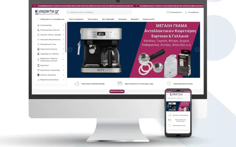 Δημιουργία ενός custom design που προσφέρει μια καθαρή, σύγχρονη και εύχρηστη εμπειρία πλοήγησης, διευκολύνοντας τους πελάτες στην αναζήτηση και αγορά ανταλλακτικών ηλεκτρικών συσκευών.